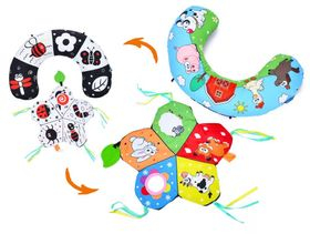 Завдяки тому, що дитячий ігровий килимок оснащений різними звуками (шурхотливими, пискливими, торохкотливими), різною фактурою тканин (гладенькою, шорсткою, шурхотячою), а також містить різноманітні колірні відтінки, немовля може із задоволенням вивчати його доволі тривалий час, щоразу відкриваючи для себе щось нове.