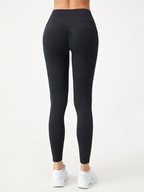 Женские чёрные леггинсы для йоги с высокой талией и утягивающим эффектом пуш-ап размер L LPLL1